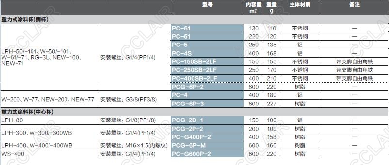 潤色和少量涂裝時(shí),使用重力式的側杯(130~600ml),中心料杯(150~600ml)