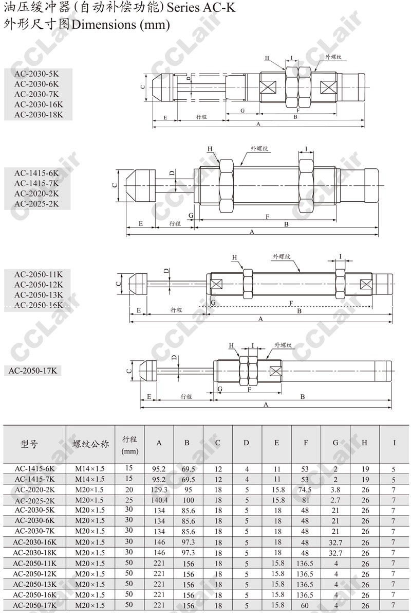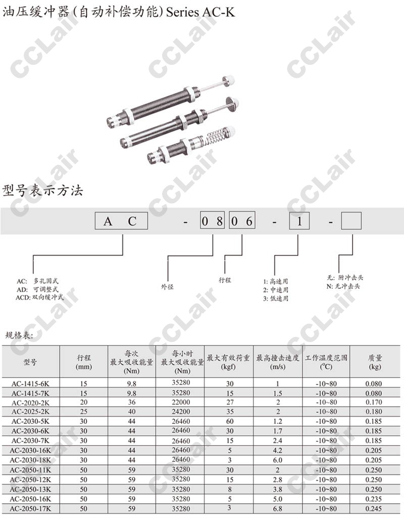 詳細信息 AC-1415-6K,AC-1415-7K,AC-2020-2K,AC-2025-2K,AC-2030-5K,AC-2030-6K,AC-2030-7K,ARK油壓緩沖器