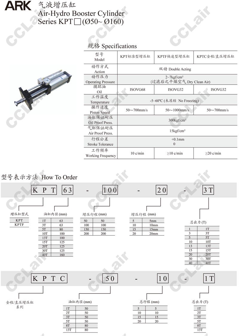 詳細信息 KPTC-50,KPTC-80,KPTC-80-20-13T,KPTC-50-5-2T,KPTC-50-20-1T,KPTC-80-20-8T,ARK氣液增壓缸