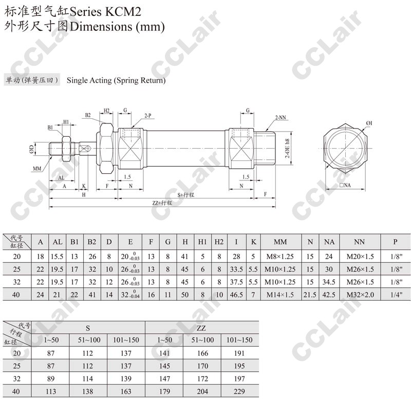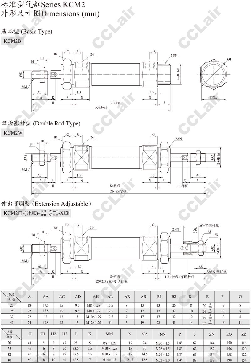 KCM2C32-25,KCM2C32-50,KCM2C32-75,KCM2C32-100,CCLair KCM2C32-125,KCM2C32-150,KCM2C32-200,