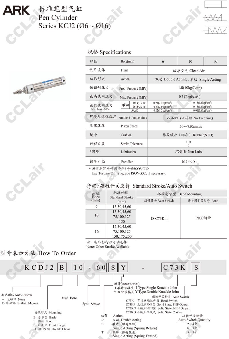 KCJ2B6,KCJ2B10,KCJ2B16,KCJ2B10-150,KCJ2B16-15,KCJ2B6-60,KCJ2B10-45,KCJ2B16-150,ARK標準筆型氣缸
