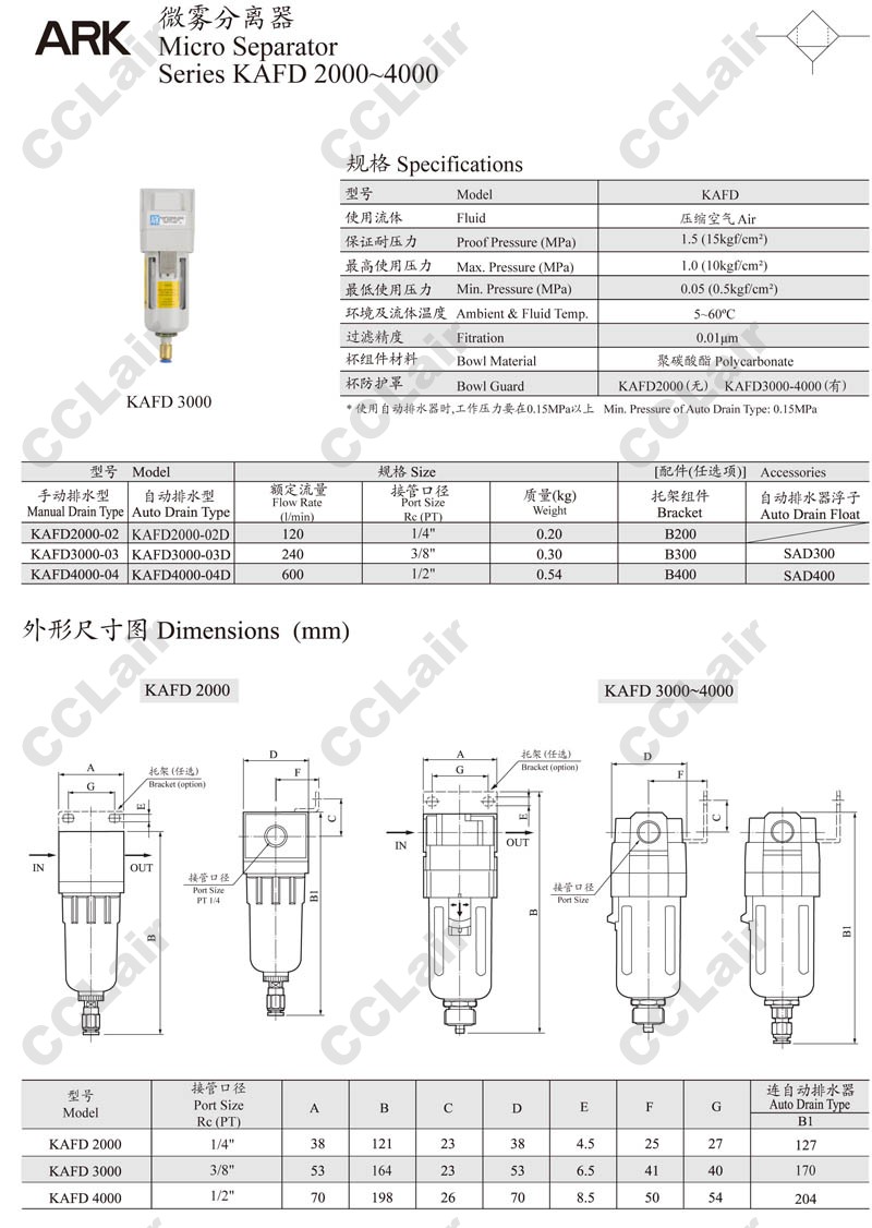 KAFD2000-02,KAFD2000-02D,KAFD3000-03,KAFD3000-03D,KAFD4000-04,KAFD4000-04D,ARK油霧分離器