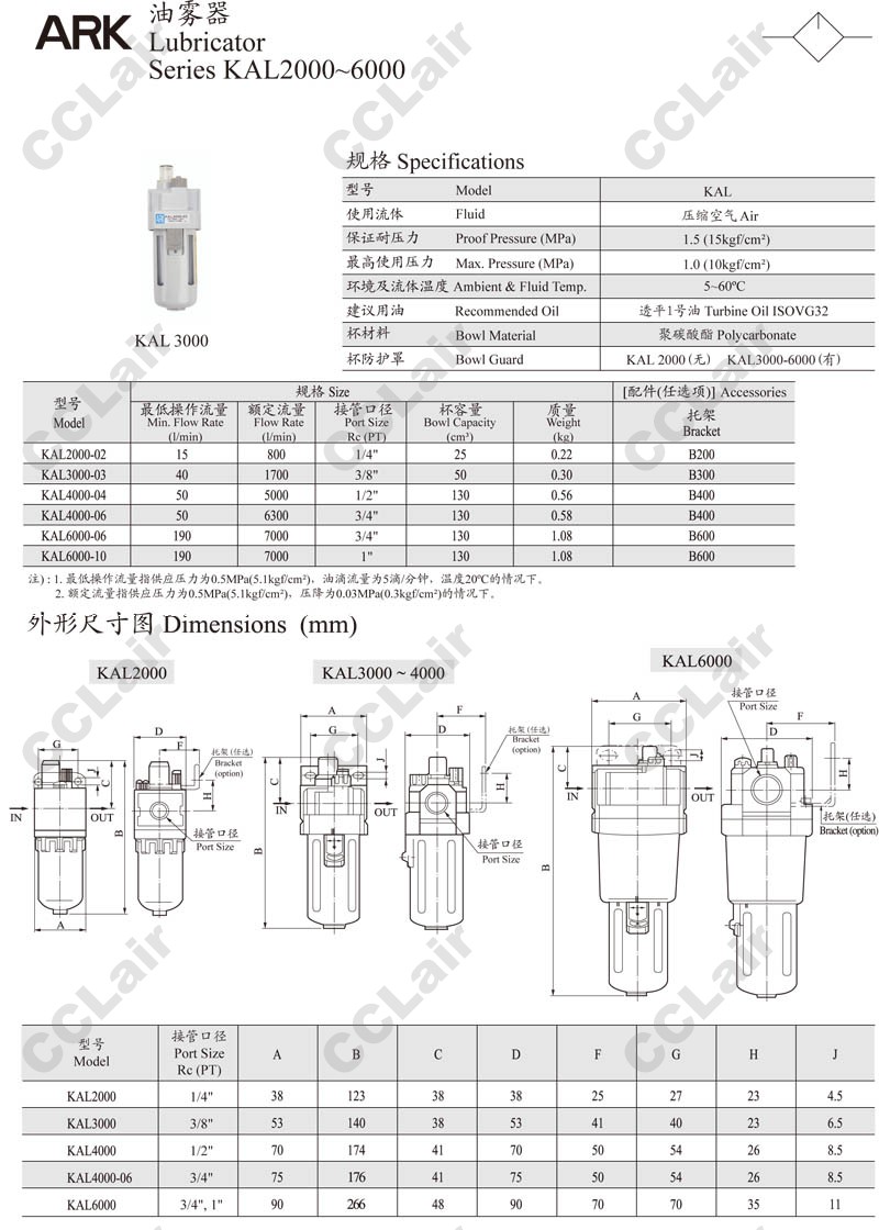 詳細信息 KAL2000-02,KAL3000-03,KAL4000-04,KAL4000-06,KAL6000-06,KAL6000-10,ARK油霧器
