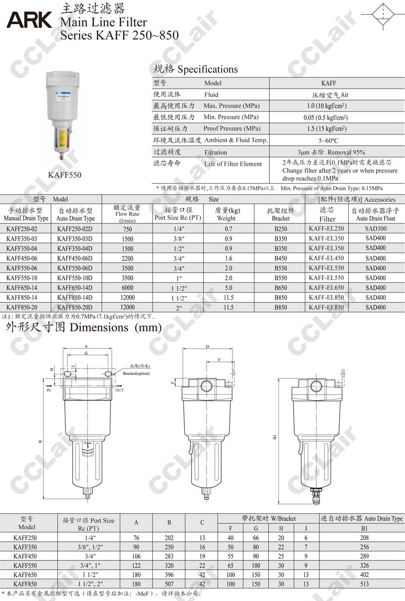 詳細信息 KAFF250,KAFF350,KAFF450,KAFF550,KAFF650,KAFF850,KAFF350-03D,KAFF550-10,ARK組合過(guò)濾器