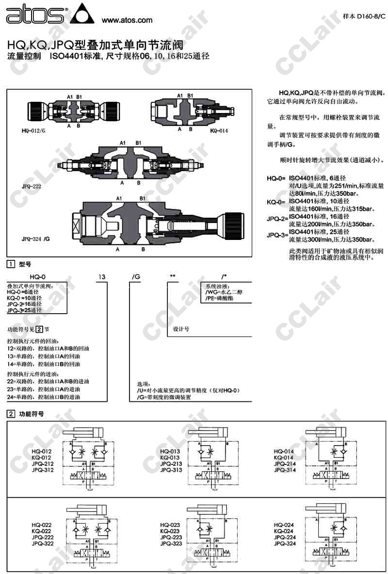 JPQ-312,JPQ-313,JPQ-314,JPQ-322,JPQ-323,JPQ-324,JPQ-312/G,阿托斯ATOS疊加式單向節流閥
