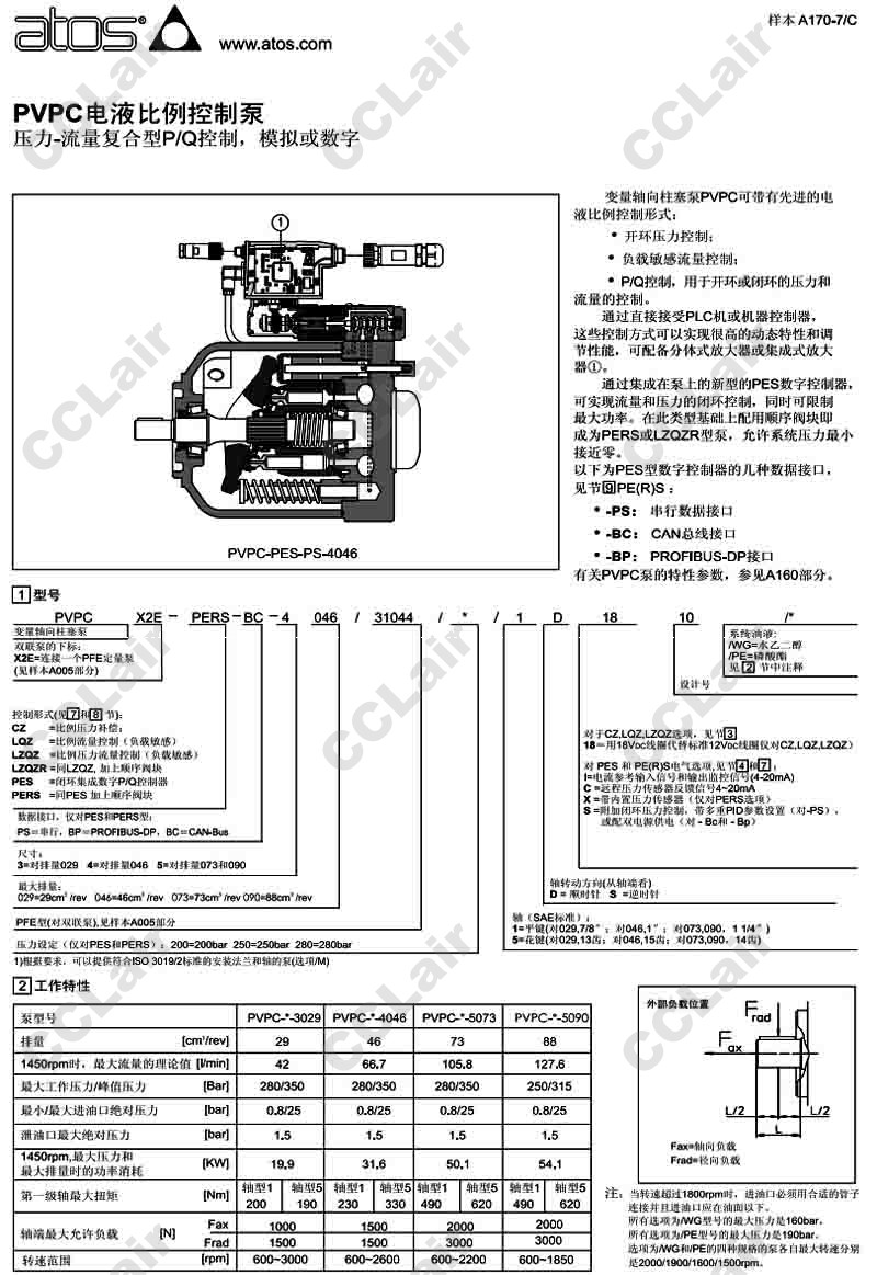 詳細信息 PVPC-CZ,PVPC-LQZ,PVPC-LZQZ,PVPC-PES,PVPC-PERS,PVPC-PES-BC-3029/250/1D,阿托斯ATOS電液比例控制泵