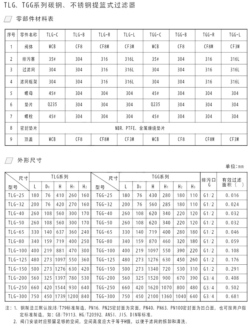 TLG-25,TLG-32,TLG-40,TLG-50,TGG-25,TGG-32,TGG-40,TGG-50,提籃式過(guò)濾器