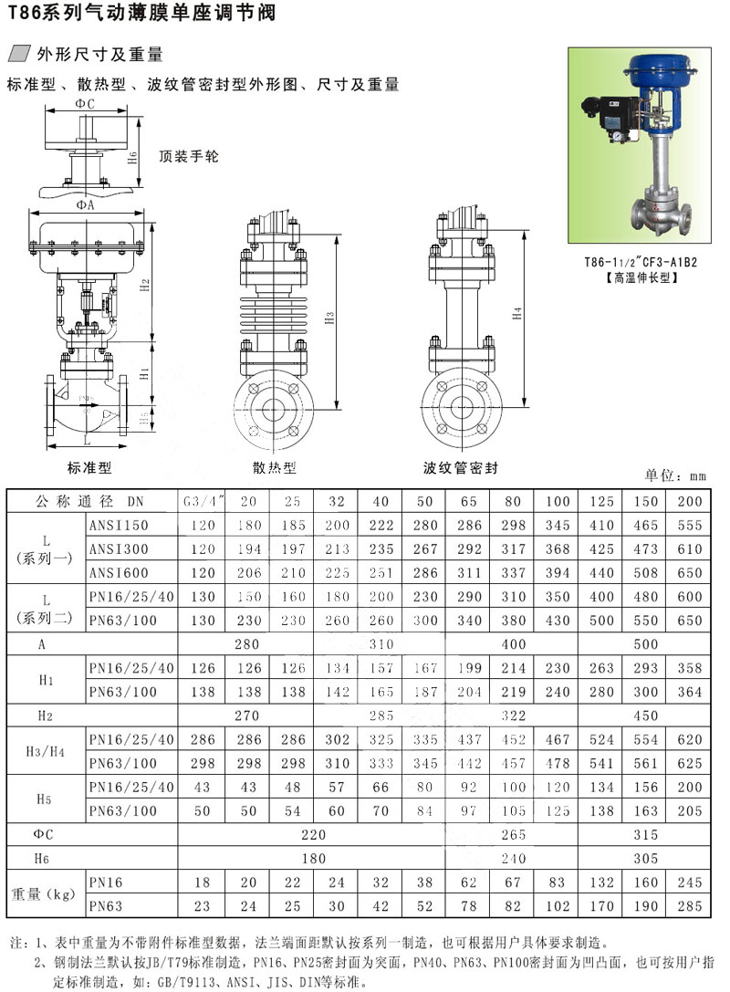 T86-16C,T86-16B,T86-25C,T86-40B,T86-63C,T86-100B,氣動(dòng)薄膜單座調節閥