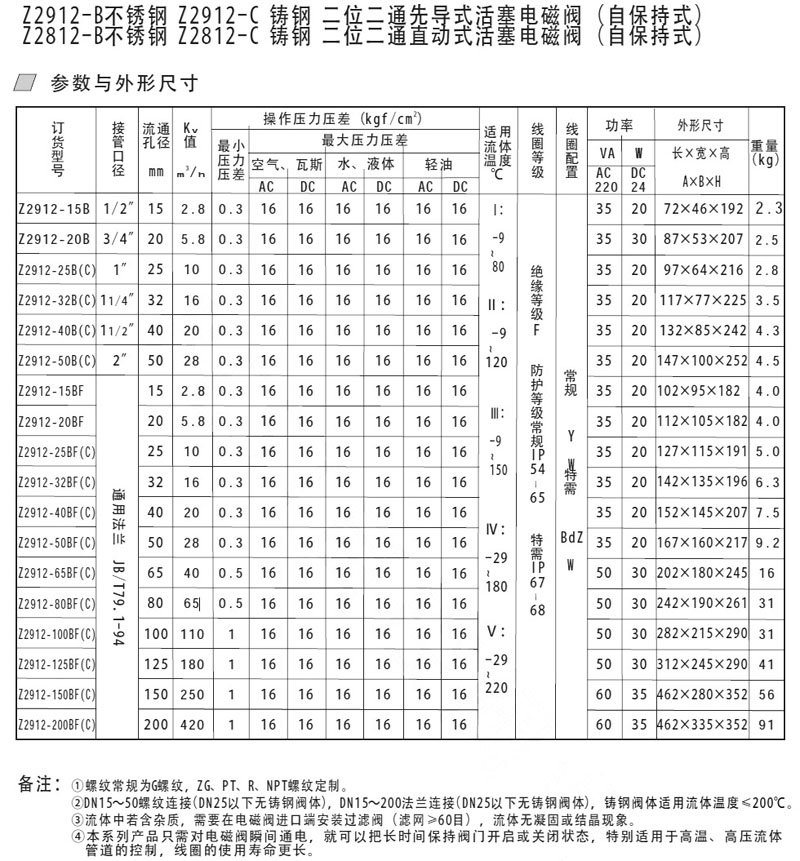 Z2912-15,Z2912-20B,Z2912-32BC,Z2912-40BF,Z2912-50BFC,先導活塞式電磁閥