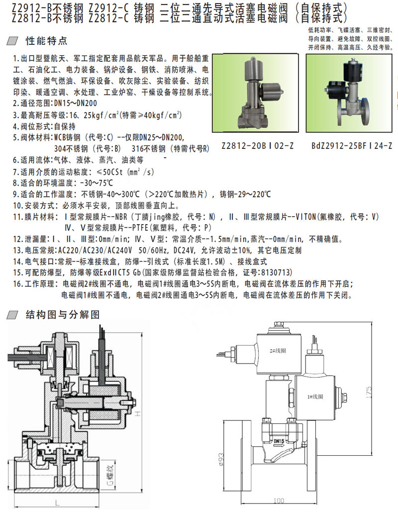 Z2912-15,Z2912-20B,Z2912-32BC,Z2912-40BF,Z2912-50BFC,先導活塞式電磁閥