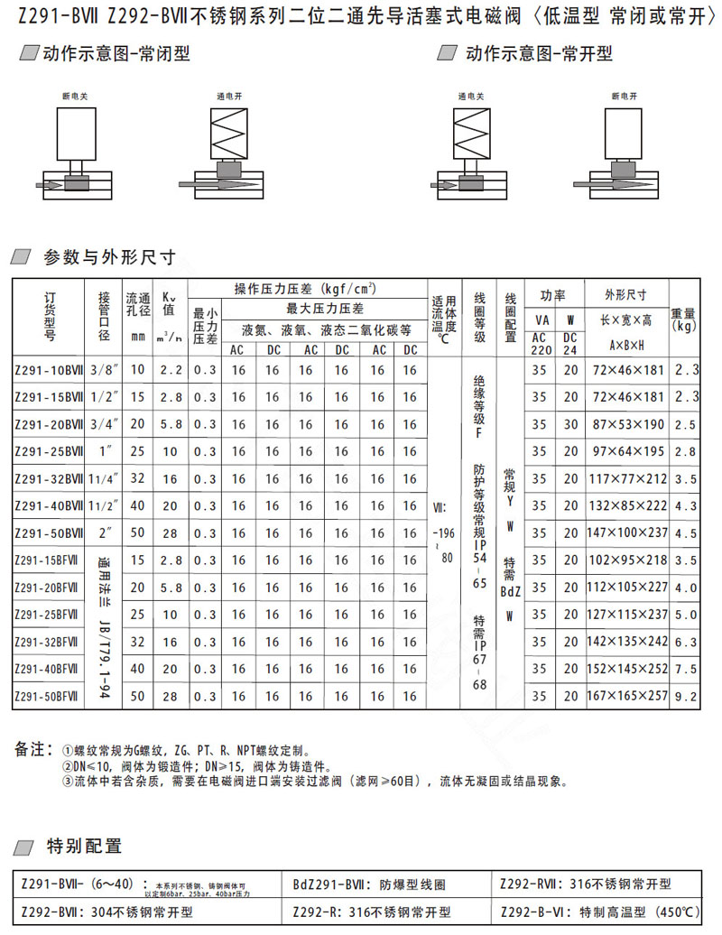 Z291-10BVII,Z291-15BVII,Z291-20BVII,Z291-25BFVII,Z291-32BFVII,不銹鋼先導活塞式電磁閥