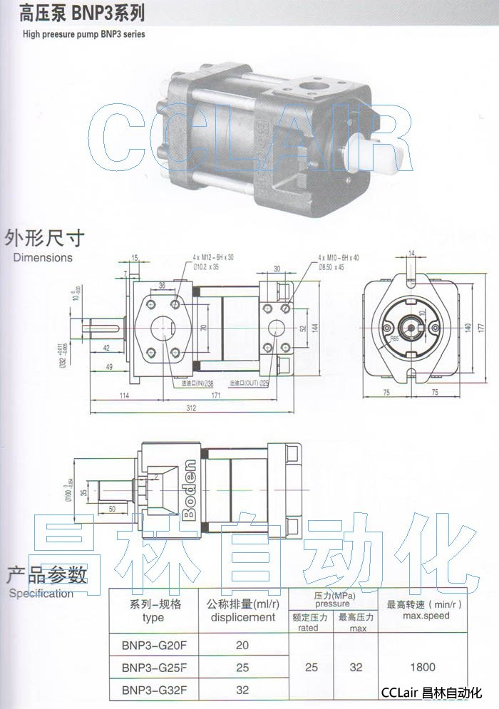 詳細信息 BNP3-G20F,BNP3-G25F,BNP3-G32F,高壓泵