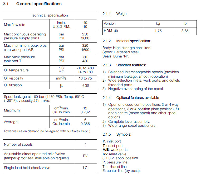 詳細信息 HDM140,Bucher整體式方向控制閥
