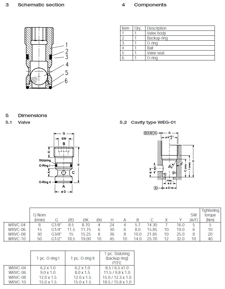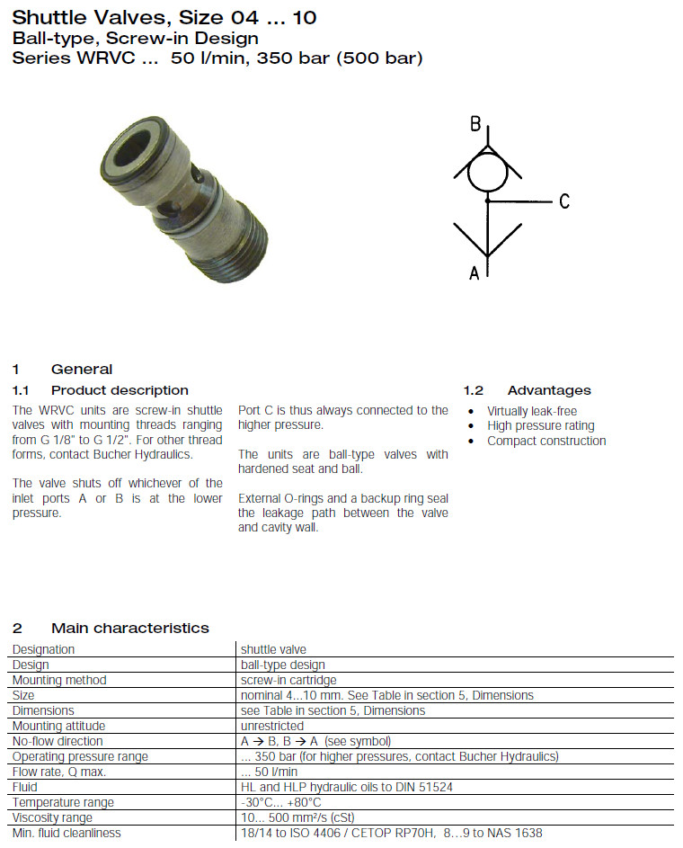 詳細信息 WRVC-G-04,WRVC-G-06,WRVC-M-08,WRVC-M-10,WRVC-U-04,WRVC-U-06,Bucher梭閥