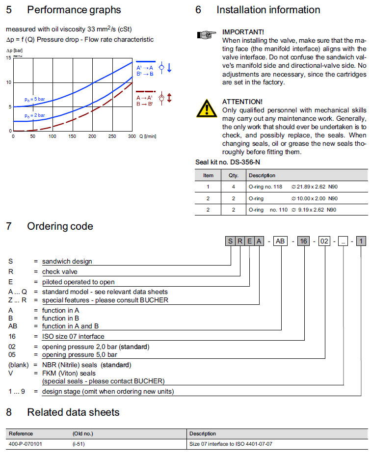 詳細信息 SREA-A-16-02-1,SREA-B-16-02-1,SREA-AB-16-02-1,SREA-A-16-05-1,SREA-B-16-05-1,Bucher止回閥