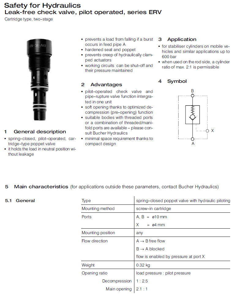 詳細信息 ERV-8-C-N,ERV-8-C-T,ERV-8-C-V,ERV-8-C-600-N,ERV-8-C-600-T,ERV-8-C-600-V,Bucher液控單向閥