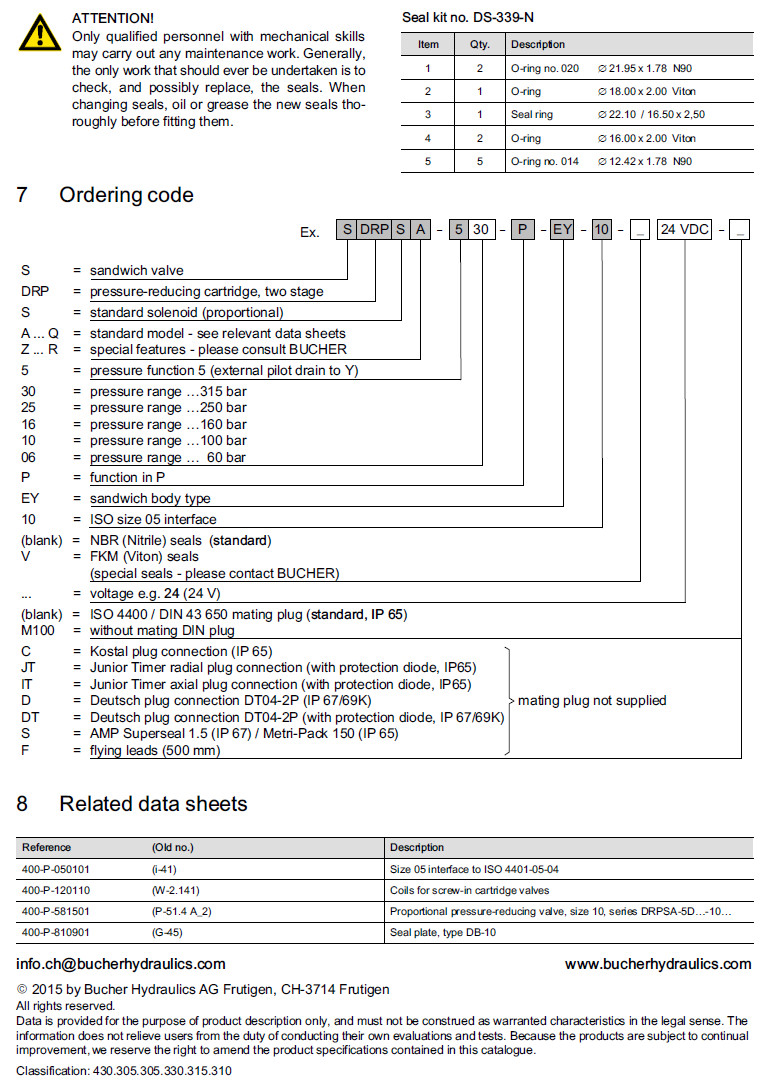 詳細信息 SDRPSA-530,SDRPSA-525,SDRPSA-5110,SDRPSA-510,SDRPSA-5010,Bucher比例減壓閥