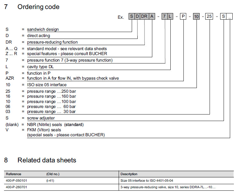 SDDRA-7L-P-10-25,SDDRA-7L-P-10-16,SDDRA-7L-P-10-06,SDDRA-7L-P-10-10,Bucher減壓閥