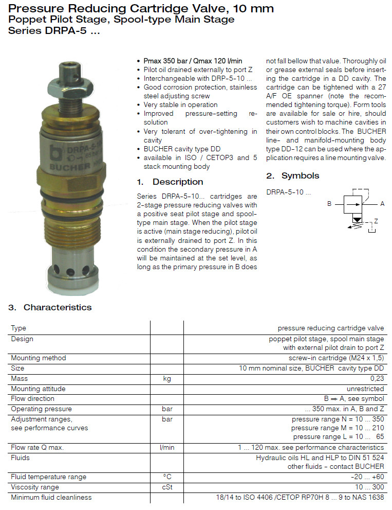 詳細信息 DRPA-5-10-SLM-3,DRPA-5-10-SL-3,DRPA-5-10-HL-3,DRPA-5-10-SM-3,Bucher減壓閥