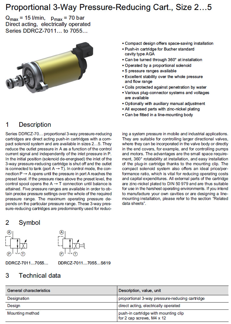 詳細信息 DDRCZ-7055-2,DDRCZ-7040-2,DDRCZ-7030-3,DDRCZ-7020-4,DDRCZ-7011-5,Bucher減壓閥