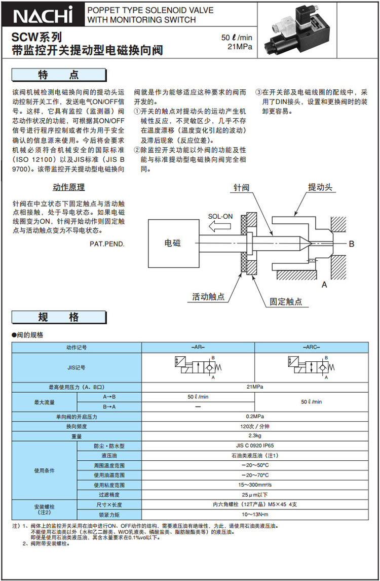 詳細信息 SCW-G03-AR-GR-D1-J10,SCW-G03-AR-E1-J10,SCW-G03-AR-R-E230-J10,NACHI電磁換向閥