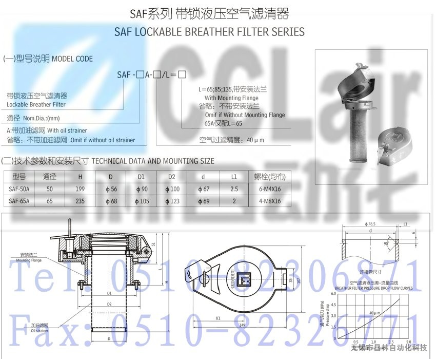 詳細信息 SAF-50A,帶鎖液壓空氣濾清器