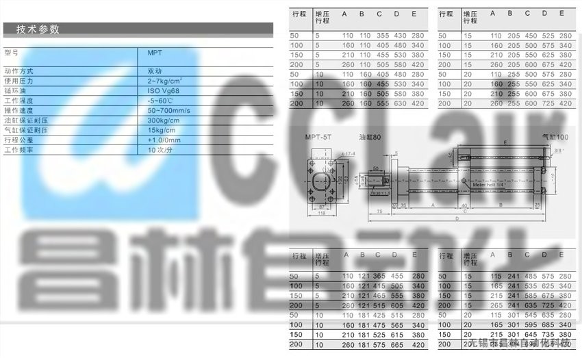 詳細信息 MPT160-100-10-15T,MPT160-100-10-20T,MPT160-100-10-30T,MPT160-100-10-40T,氣液增壓缸