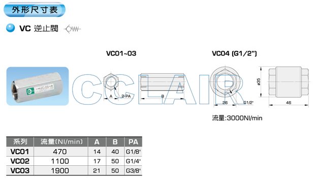 VC01,VC02,VC03,VC04,逆止閥,