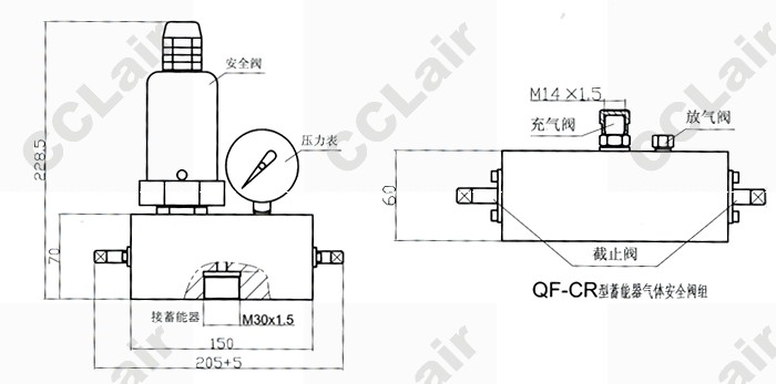 QF-CR系列蓄能器用氣體安全閥是用來(lái)給蓄能器充氣、放氣、檢測氣體壓力外,主要是用來(lái)防止蓄能器超壓。