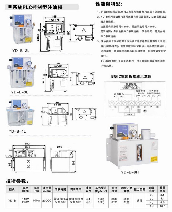YD-B-2L,YD-B-3L,YD-B-4L,YD-B-8H,系統PLC控制型注油機