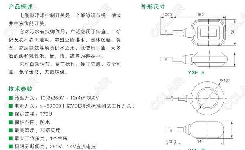 YXF-F,電纜式浮球開(kāi)關(guān)