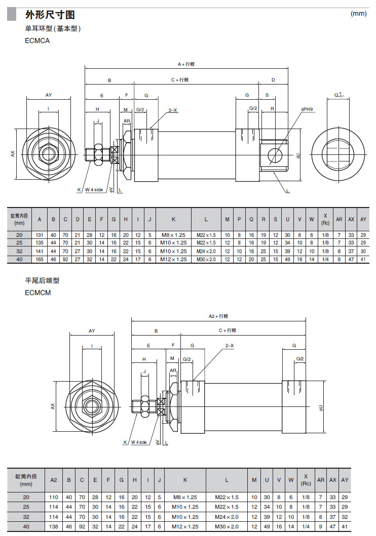 ECCM20,ECWCM20,ECMCM20,ECWMCM20,ECCM32,ECWCM32,ECMCM32,ECWMCM32,小型氣缸