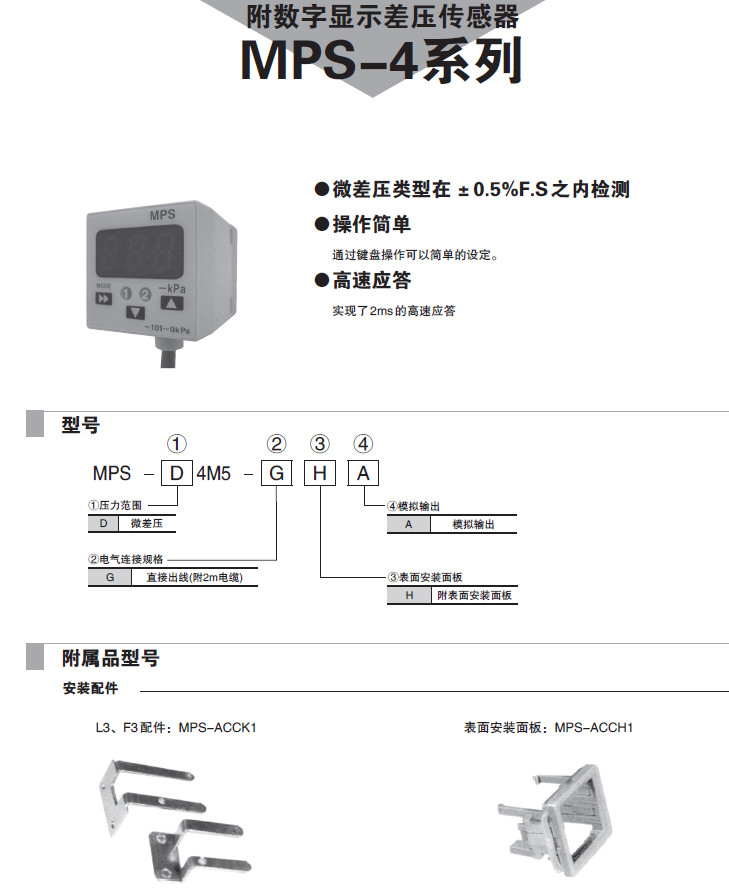 詳細信息 MPS-D4M5-GHA,差壓傳感器