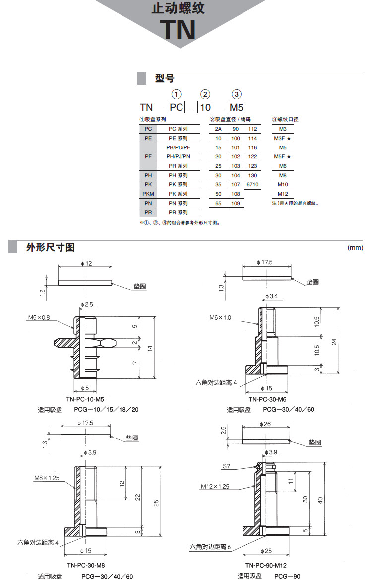 TN-PC,TN-PE,TN-PF,TN-PH,TN-PK,TN-PKM,TN-PN,TN-PR,止動(dòng)螺紋