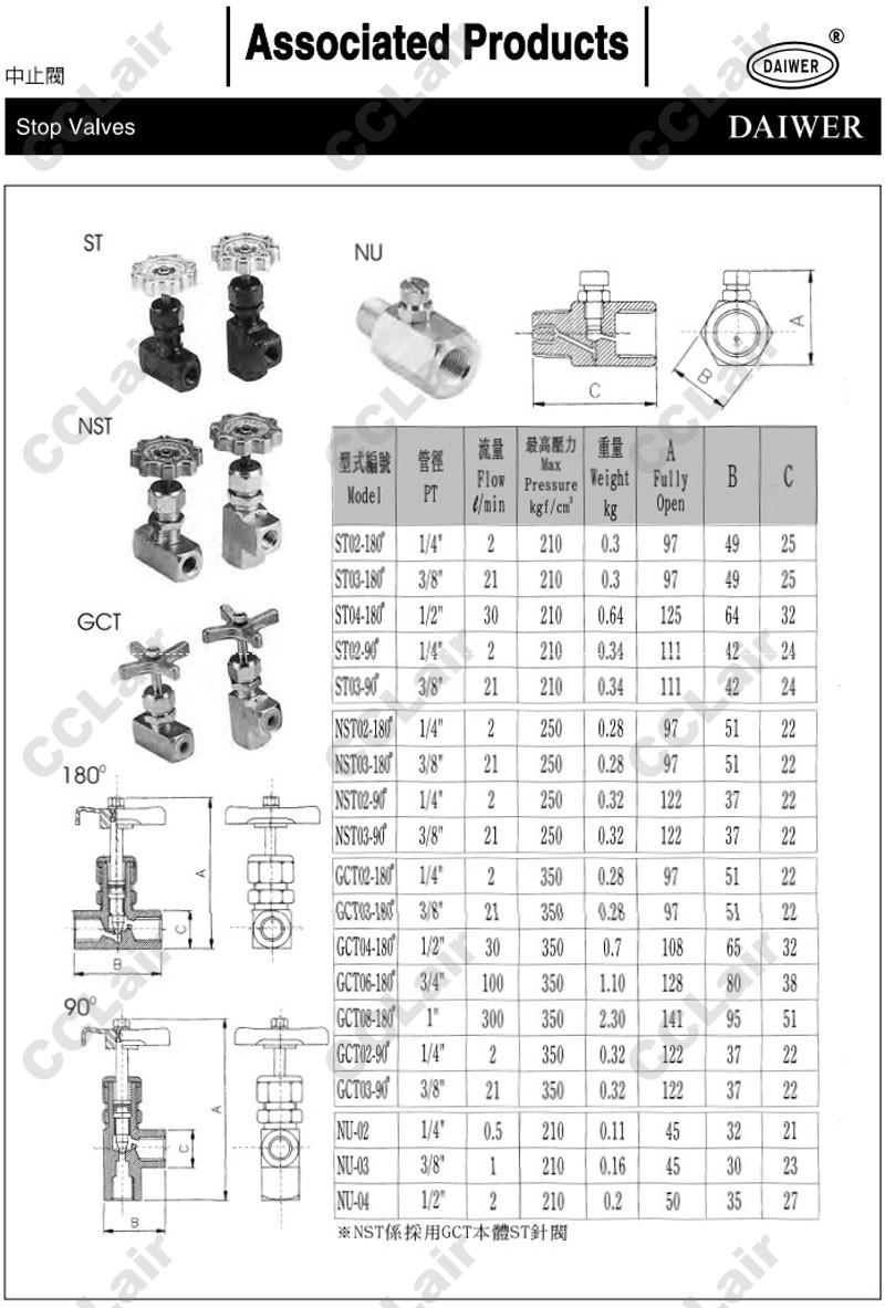 詳細信息 ST02,ST03,ST04,NST02,NST03,GCT02,GCT03,GCT04,GCT06,NU-02,NU-03,NU-04,DAIWER中止閥