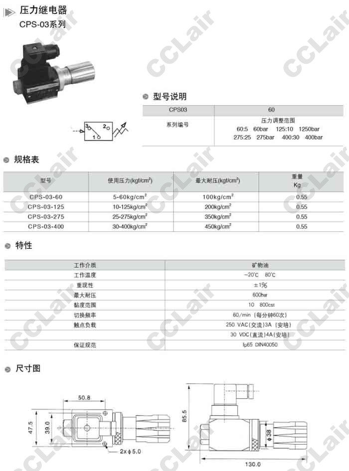 詳細信息 CPS-03-60,CPS-03-125,CPS-03-275,CPS-03-400,壓力繼電器,無(wú)錫昌林