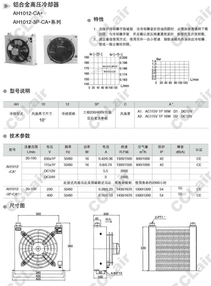 詳細信息 AH1012-CA1,AH1012-CA2,AH1012-CD1,AH1012-CD2,AH1012-3P-CA1,高壓冷卻器