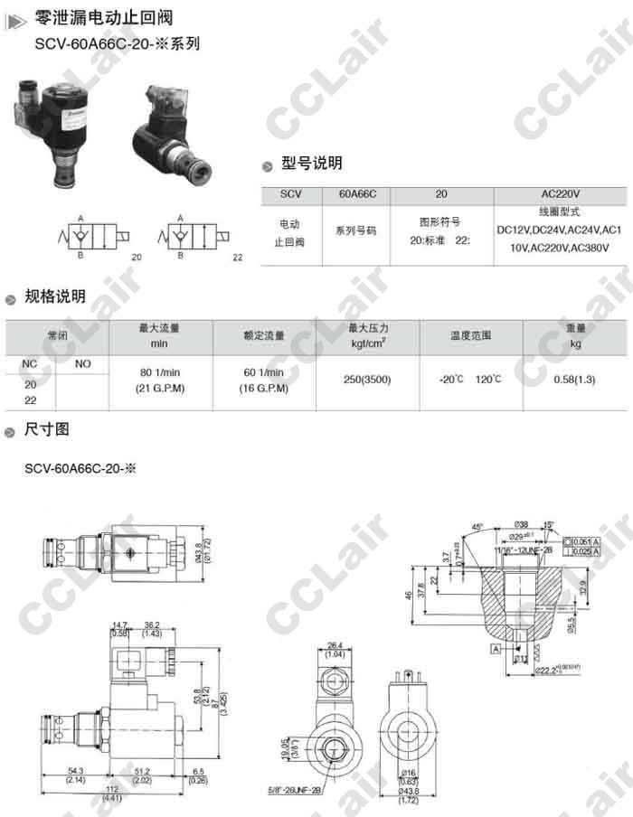 詳細信息 SCV-60A66C-20,SCV-60A66C-22,SCV-60A66C-20-DC12V,SCV-60A66C-20-DC24V,零泄漏電動(dòng)止回閥