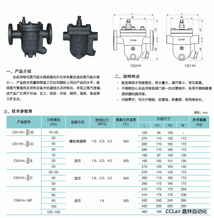CS41H-16D,CS41H-25D,CS41H-40D,CS41H-16F,自由浮球式蒸汽疏水閥