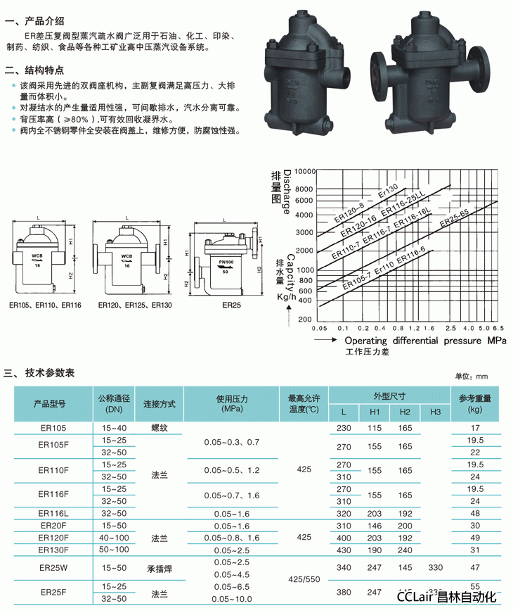 ER105,ER105F,ER110F,ER116F,ER116L,ER20F,ER120F,ER130F,ER25W,ER25F,差壓復閥鐘型浮子式蒸汽疏水閥