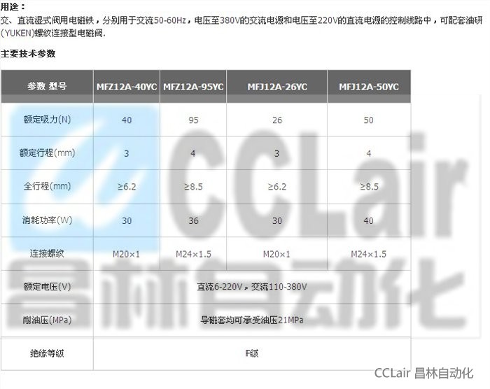 詳細信息 MFZ12A-40YC,MFZ12A-95YC,直流濕式閥用電磁鐵,生產(chǎn)廠(chǎng)家,價(jià)格