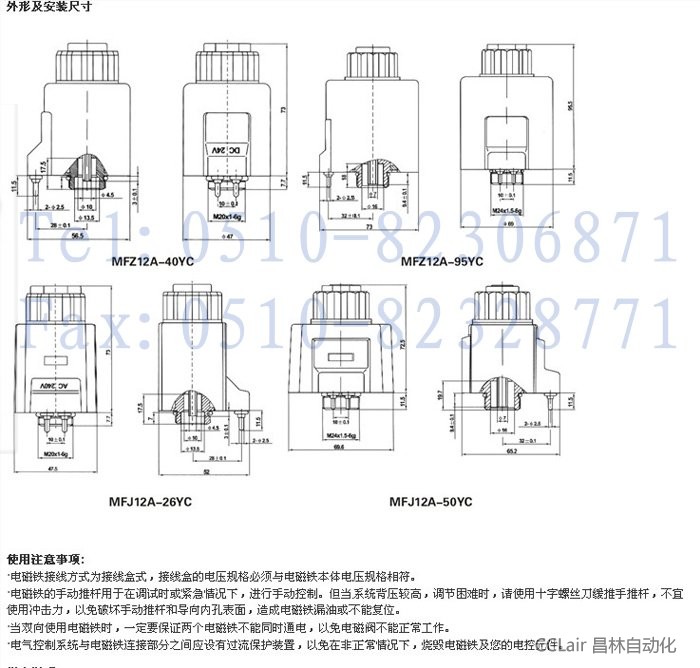 MFZ12A-40YC,MFZ12A-95YC,直流濕式閥用電磁鐵