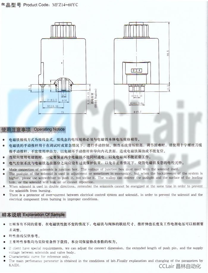MFZ14-20YC,MFZ14-60YC,直流(接線(xiàn)盒式)濕式閥用電磁鐵