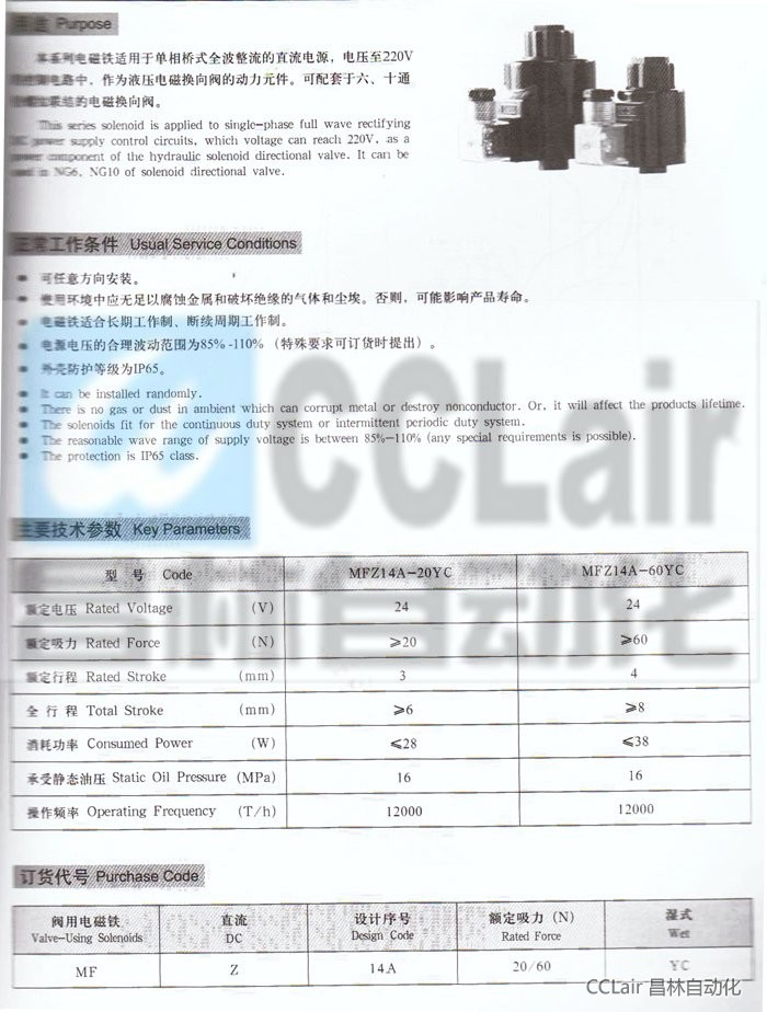 MFZ14A-20YC,MFZ14A-60YC,直流濕式閥用電磁鐵