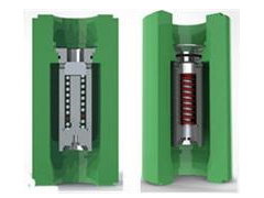 泵保護閥是自力式的,受到彈簧力作用的閥芯沿軸向運動(dòng),這樣在背壓閥前后產(chǎn)生壓差。同時(shí),閥座上孔的開(kāi)度逐漸變大,直至壓差到達設定點(diǎn)。
