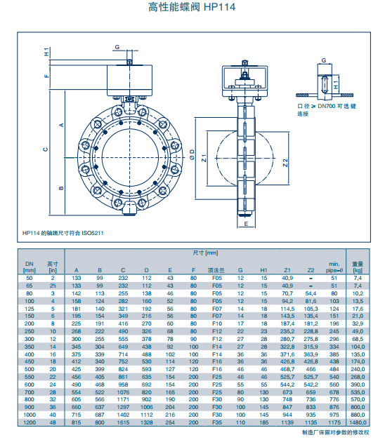 HP114 DN50,HP114 DN65,HP114 DN80,HP114 DN100,HP114 DN125,高性能蝶閥