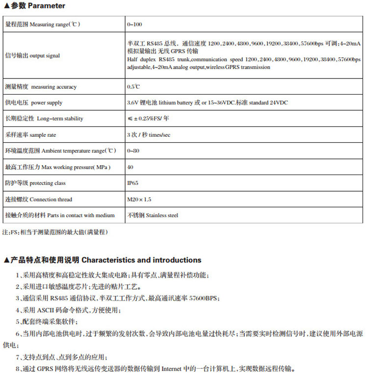 詳細信息 FTT-300,無(wú)線(xiàn)遠傳型溫度變送器