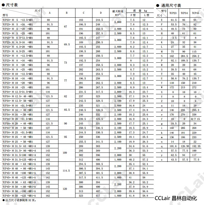 TCP33-L16-20-MR1,TCP33-L16-25-MR1,TCP33-L20-20-MR1
