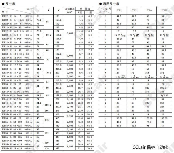 TCP55-L100-100-MR1-A,TCP55-L100-125-MR1-A,TCP55-L125-125-MR1-A,無(wú)錫昌林