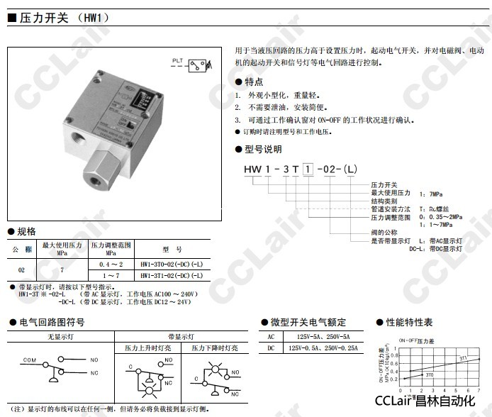 詳細信息 HW1-3T0-02-DC-L,HW1-3T1-02-DC-L,壓力開(kāi)關(guān)